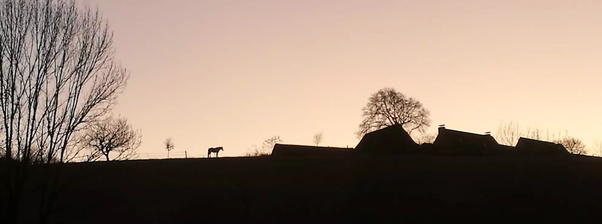 Un ancien corps de ferme tout de pierres vêtue, au sommet d’une colline, dix hectares de prairies entourés de bois de chênes, lieu-dit nommé « Le Castanet ».